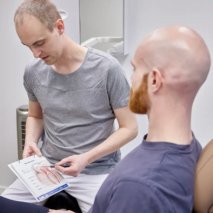 Inden vi går i gang, undersøger vi dine tænder grundigt. Vi sikrer, at dine tænder og dit tandkød er sunde nok til blegning, så du er garanteret et sikkert og flot resultat hver gang.